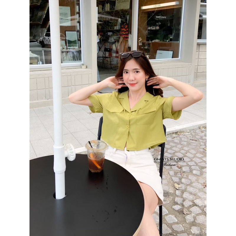 Pakaian Wanita > Atasan > Kemeja & Blouse > ATASAN KEMEJA GIANTS BASIC MODEL CROP KANTONG 2 BLOUSE IMPORT BANGKOK (BJFS165)
