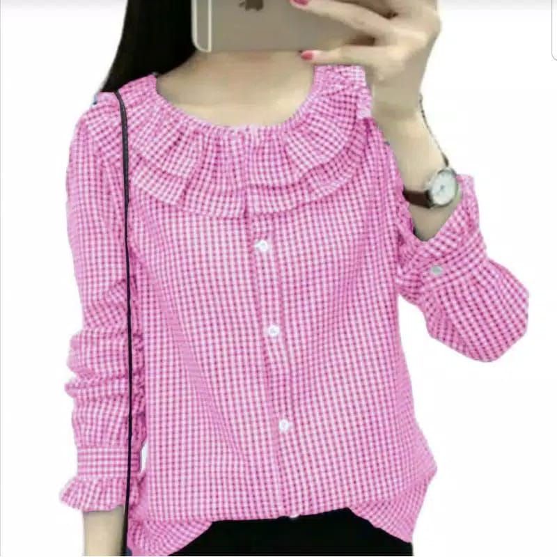 - blous wanita dari bahan katun kotak kotak dan nyaman saat digunakan bahan halus untuk bagian kancing tangan hidup