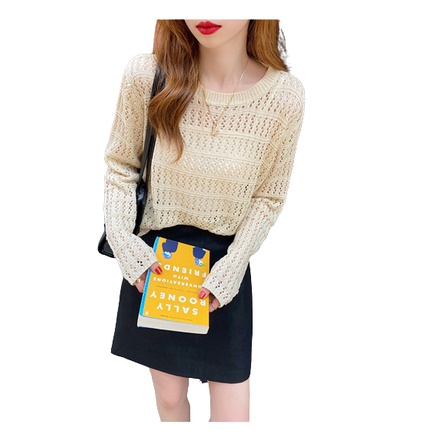 Detail ATASAN LENGAN PANJANG TRANSPARAN RAJUT KOREAN SEXY TRANSPARENT