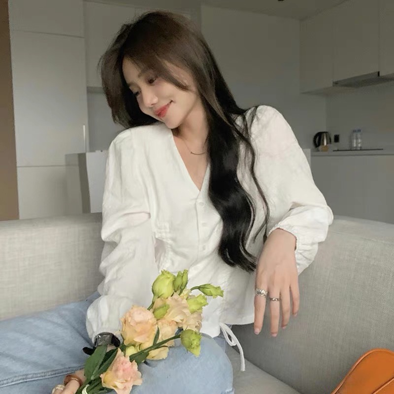 Video perkenalan produk Atasan Lengan Panjang Wanita Lengan Balon Serut Tali Kemeja Katun. Sumber: Shopee.