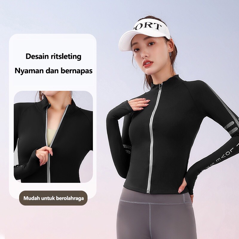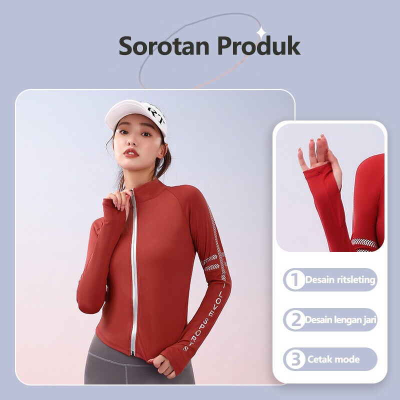 Detail Atasan mantel tahan angin Yoga Ritsleting Atletik Wanita UPF 50+ /Anti UV ilove The Healthy Glow