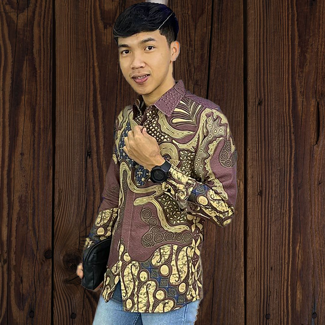 Detail ATASAN PRIA BAJU BATIK LAPIS FURING PREMIUM..ANTASENA BURGANDI