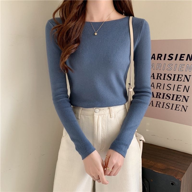 Pakaian Wanita > Sweater & Cardigan > Atasan Rajut Importt Wanita Knitwear Fashion Korean Crop Long Sleeve Knit Top Atasan Crop Atasan Korean Style Wanita