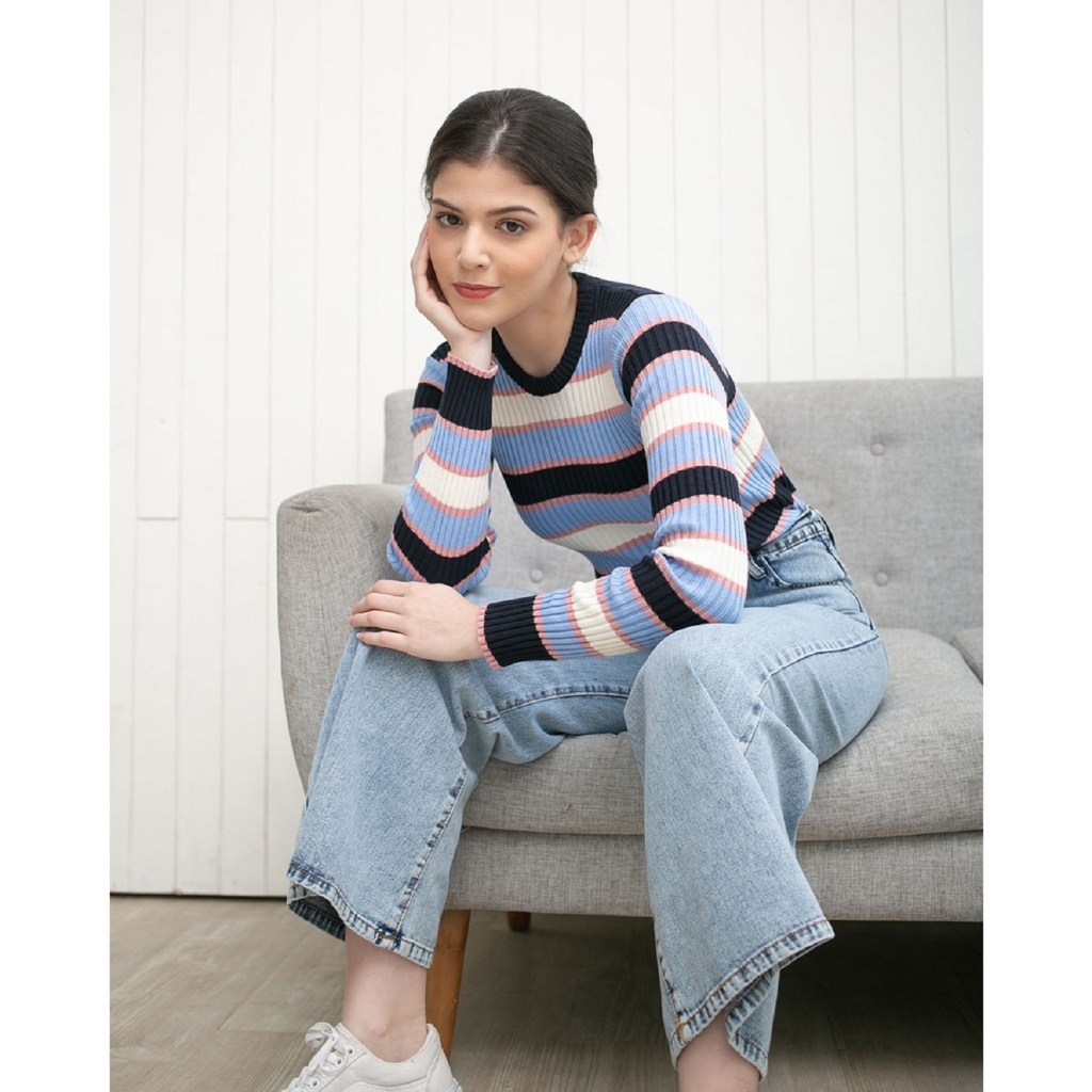 Detail atasan rajut knit bica/inner rajut motif garis/pakaian rajut wanita best seller terbaru