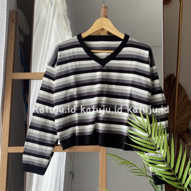 Detail ATASAN RAJUT MOTIF GARIS DAILY OUTFIT VIOLA KERAH V NECK