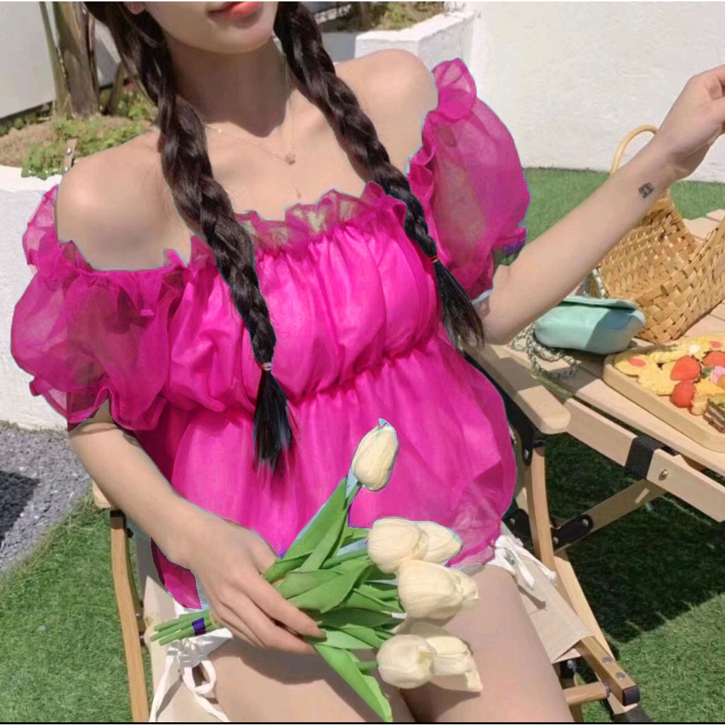 Detail Atasan Sabrina Wanita Bahu Terbuka Lengan Pendek Bahan Organza 930