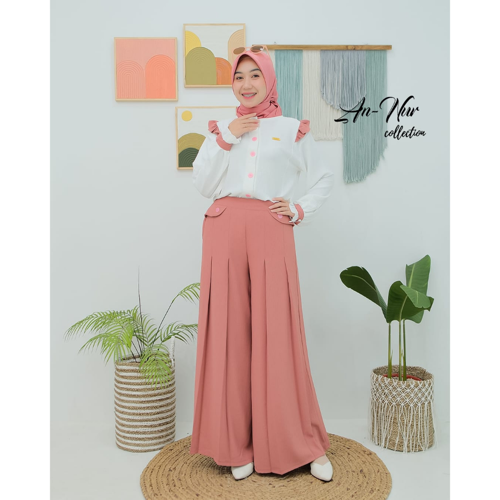 BISMILLAHIRROHMANIRROHIIM ADA MODEL TERBARU DARI ANNUR, SET ATASAN KULOT PLISKET KEKINIAN, KOSTUM KERJA ATAU SEKEDAR HANGOUT COCOK BANGET KANN.....