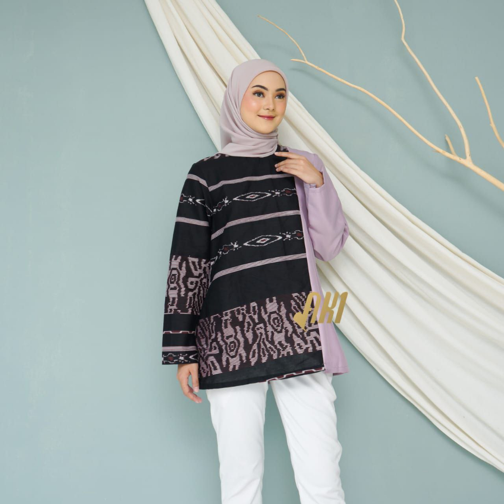 Detail Atasan Top Kemeja Blouse Fashion Batik Kerja Kantor Formal Casual Wanita Motif Songket Style Modern