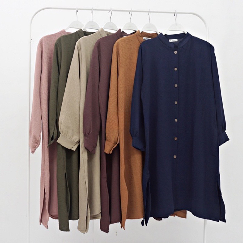 Pakaian Wanita > Atasan > Atasan Lainnya > Atasan Tunik Kimi - Baju Atasan Wanita Crinkle Full Kancing Lengan Panjang - Atasan Kemeja Wanita - Atasan Tunik Jumbo Wanita - Atasan Jumbo - Atasan Muslim Jumbo