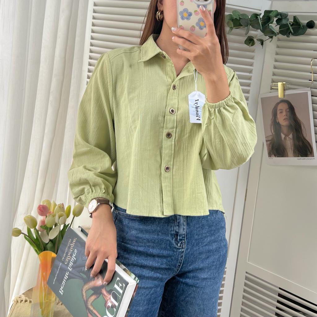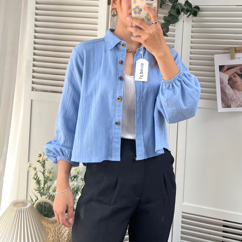 Detail Atasan Wanita Korea Crop / Kemeja Linen Polos / Shirt Lengan Panjang / Blouse Longshirt E09