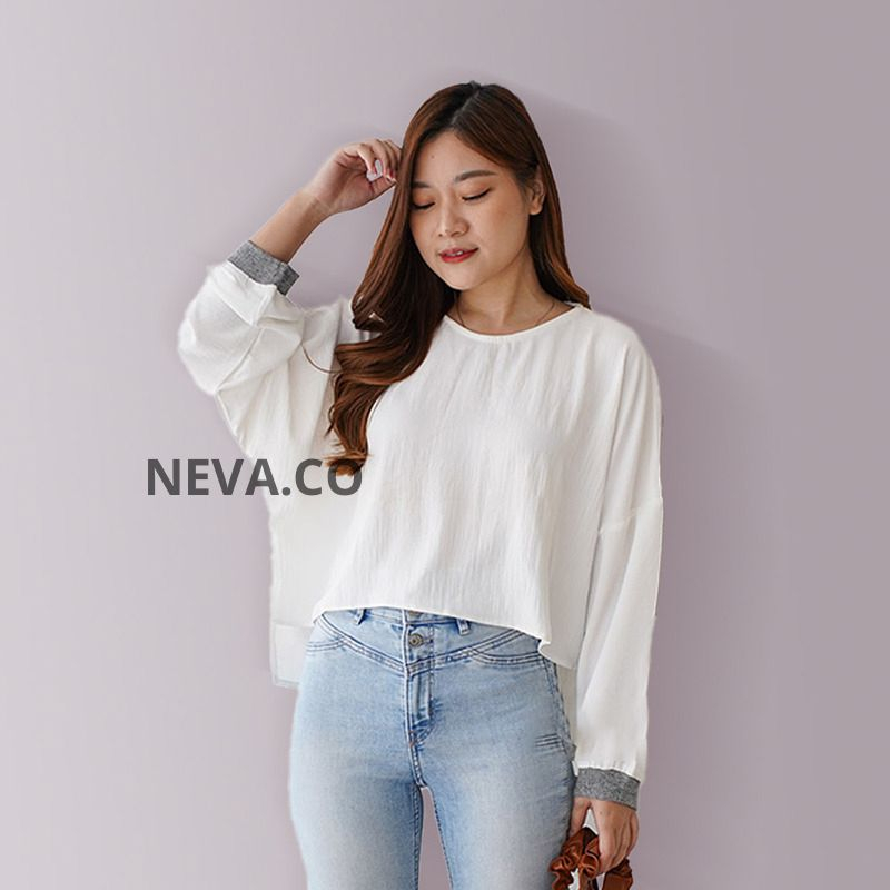 Pakaian Wanita > Atasan > Kemeja & Blouse > Atasan Wanita Korean Style YOONA Long Sleeve Crop Top Oversize Crinkle Airflow Premium Lengan Panjang Terbaru Kekinian OOTD Hangout Remaja Dewasa