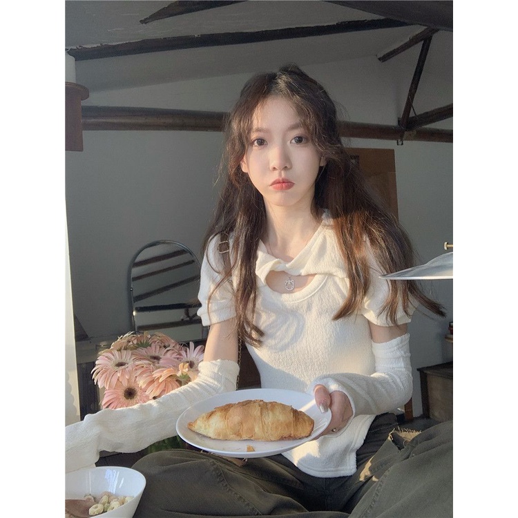 Detail Atasan Wanita Putih Crewneck Polos Lengan Pendek Casual Crop Top