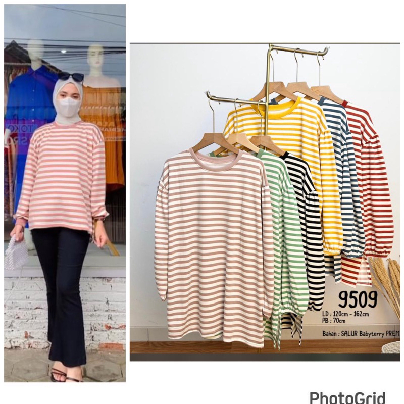 Detail atasan kaos wanita salur kaos import atasan wanita oversize tangan karet