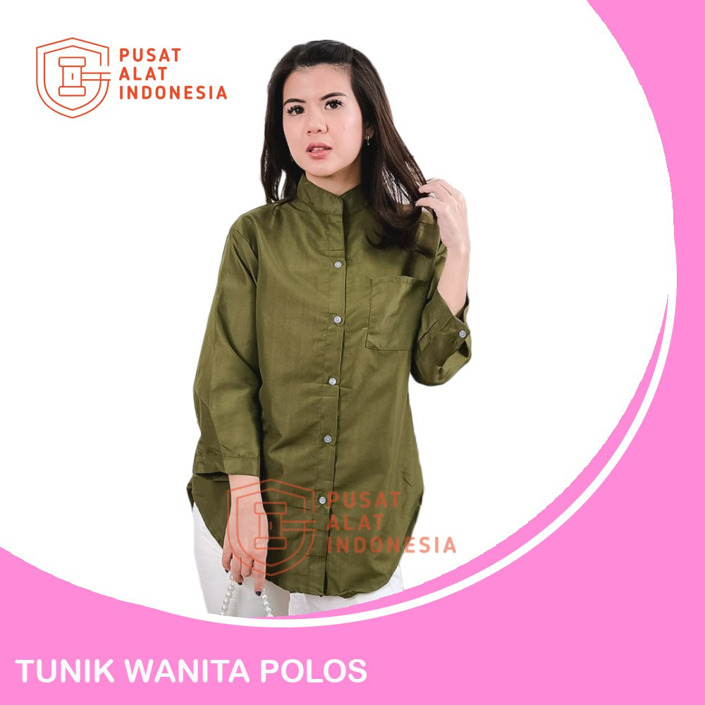 Atasan wanita tunik polos saku depan bahan katun tnk07