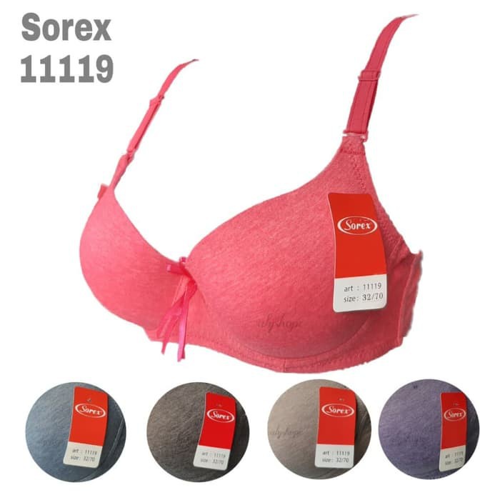 cup bra sorex 11119 lebih kecil dari bra sorex 11105 bahan sama Ukuran: 34 - 40 ( pakai kawat, busa, kait 2 )