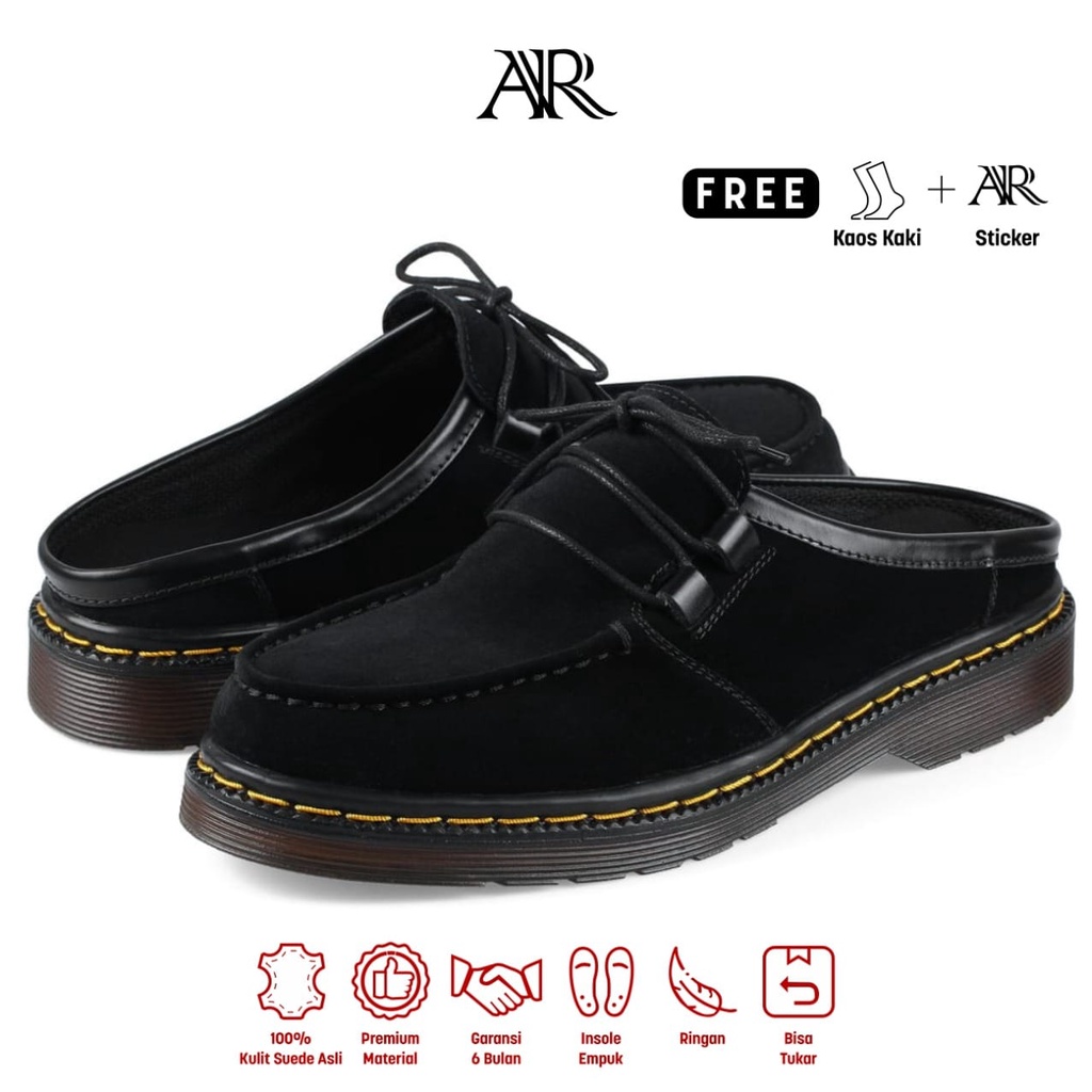 Detail Athar Shajodo - Sepatu Sandal Mules Pria Suede Hitam