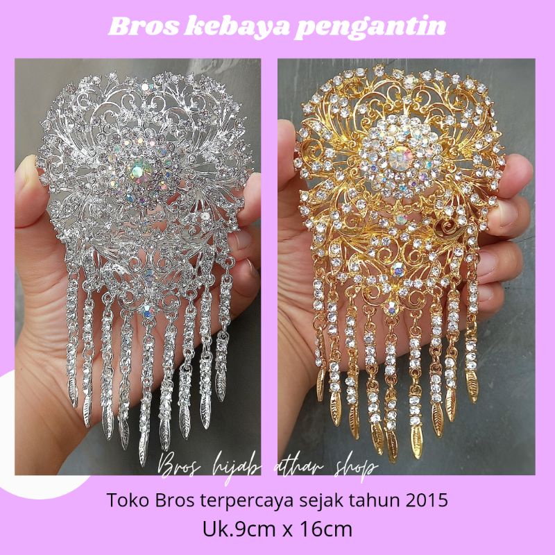 Detail athar shop COD Bros kebaya pengantin bunga besar jumbo gold silver bros pesta akad nikah/bros juntai