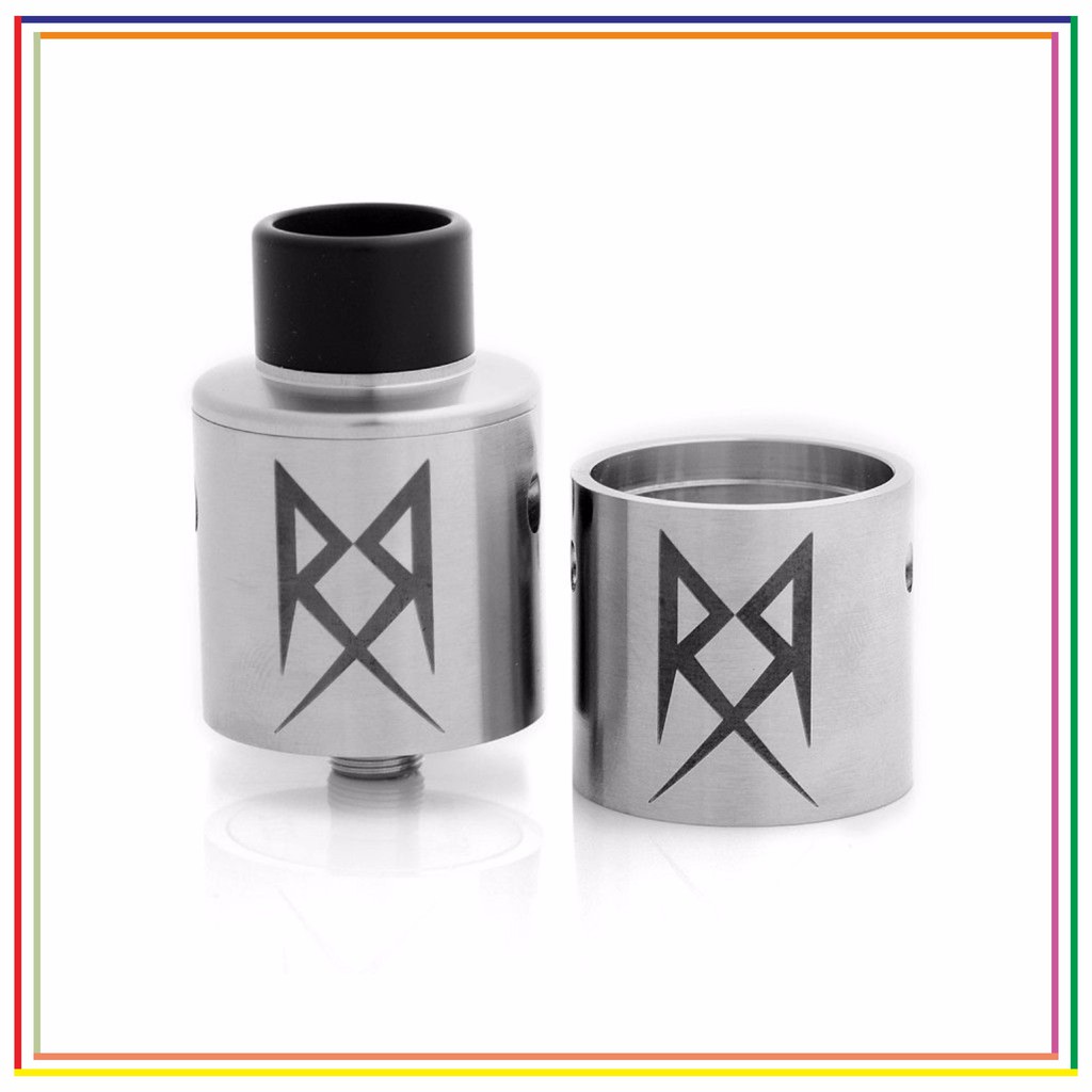Diameter: 24mm; br 22mm build deck; br Stainless Steel construction; br Quad-post build deck; br Brass plated Gold positive center pin; br 510 threading connection; br Wide bore drip tip; br PEEK insulations; br Raised negative post for easy building; br Unique airflow holes to help prevent leaking