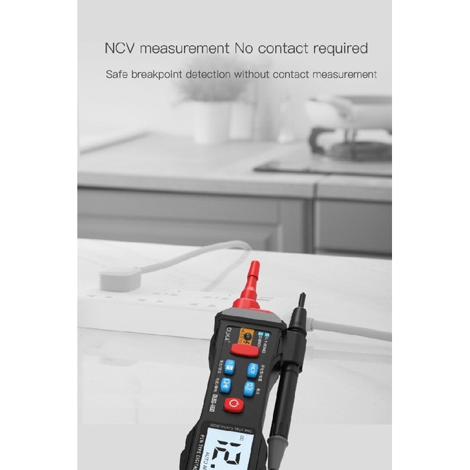 Main Features: - A variety of practical function, such as measuring DC voltage, resistance, voltage sensing, zero line recognition, data retention, backlight display, anti-burn protection, etc - Small and portable, 48mm product body, 98g weight - The device is equipped with a flashlight function, easy to use day and night - Non contact, NCV measurement
