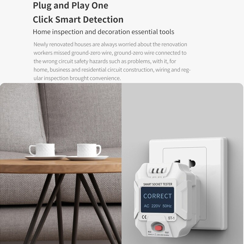 Detail AtuMan Stop Kontak Voltage Tester Detector Grounding Wire Leak Polarity Phase Check Detection EU Plug - ST-1 - White