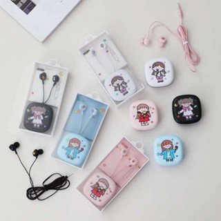 [ KI 372 ] Set Headset Earphone karakter korean girl / + Wadah penyimpanan Earphone Motif in ear