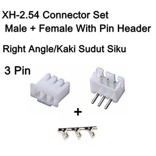 Connector 3P Set XH2.54 Male Female 3Pin PCB kabel kaki Siku L Bengkok