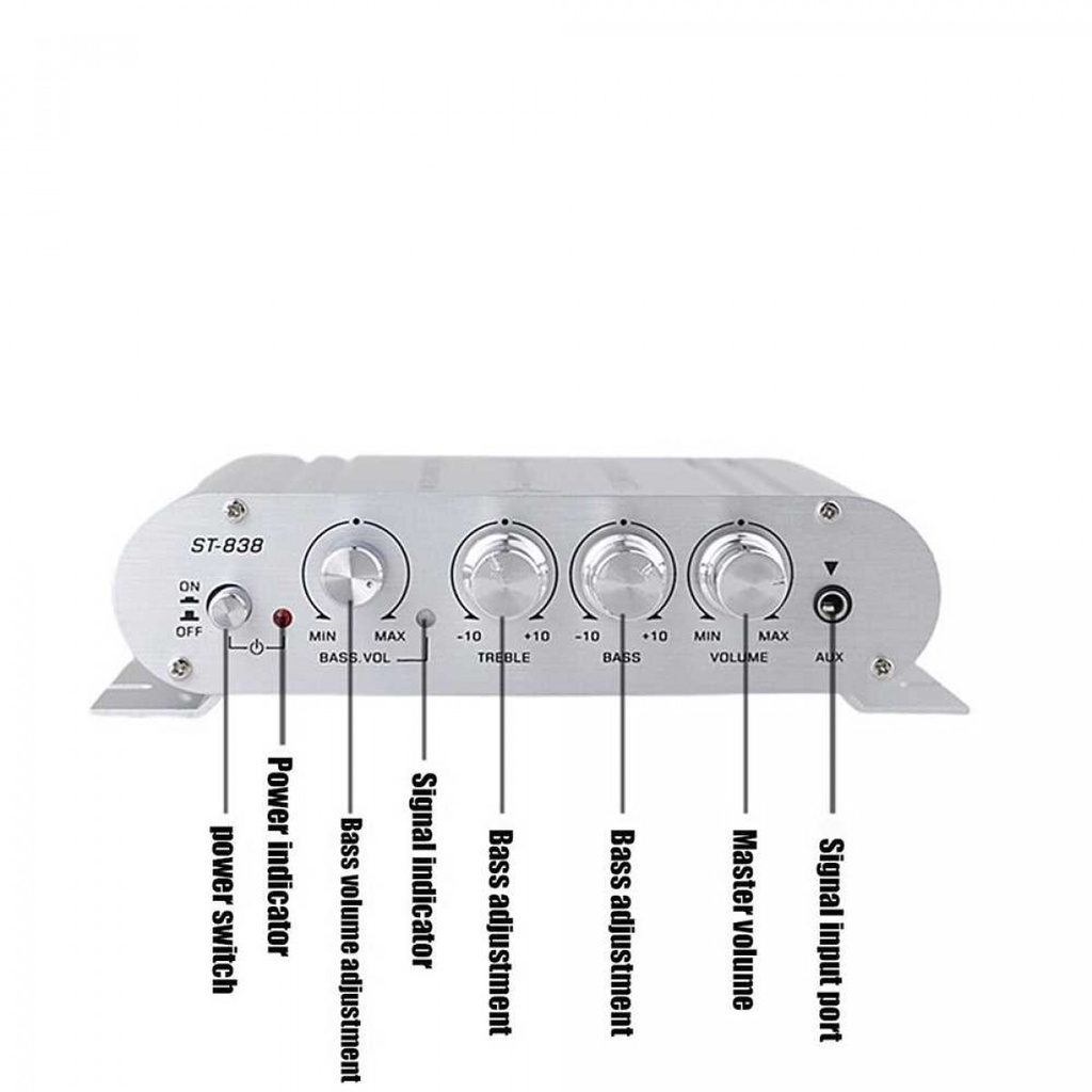 Kelengkapan Produk Rincian yang Anda dapatkan untuk pembelian produk ini: 1 x CLAITE HiFi Stereo Amplifier Treble Bass Booster - ST-838 1 x Panduan Penggunaan