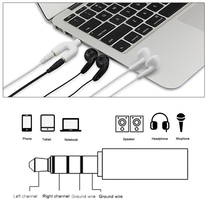 Bisa juga digunakan untuk Laptop yang hanya memiliki 1 colokan sehingga terbatas dalam memilih headphone yang biasanya tersedia dipasaran dengan 2 colokan