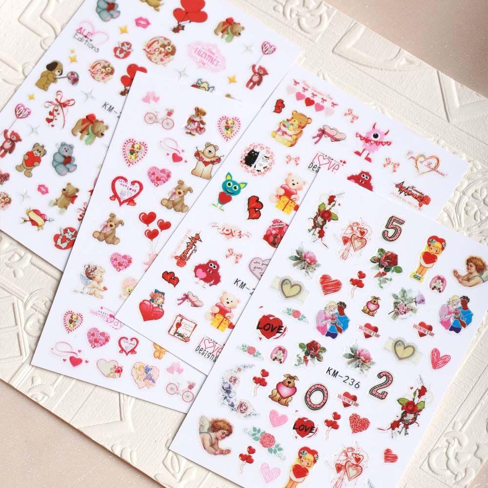 AUGUSTINA Agustinina Kartun Stiker Kuku Wanita Fashion Valentine Day Nail Art Ikatan Simpul Manikur Aksesoris Nail Art Dekorasi