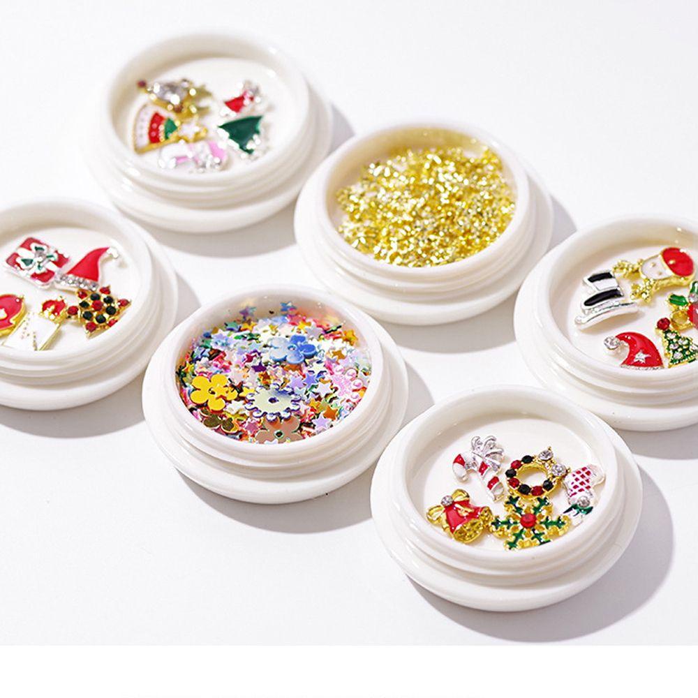Perawatan & Kecantikan > Perawatan Kuku > Nail Art & Sticker > AUGUSTINA Agustinina Natal Dekorasi Nail Art Kawaii Gadis Snowflake Pohon Natal Kartun Logam 3D Nail Art Berlian Imitasi
