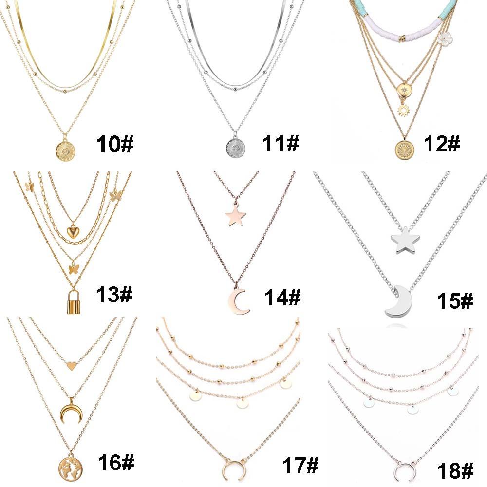 Paket: 1 PC kalung kalung Paket: 1 PC kalung kalung Multi-layer Kalung Liontin Sweater Rantai Paduan Bulan Bintang Kunci Koin Wanita untuk Wanita Hadiah Boho Perhiasan Aksesoris Fashion Pesta Retro
