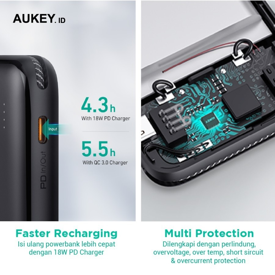 Dari sisi keamanan, tidak perlu kuatir karena AUKEY membekalinya dengan Multi-Protection, diantaranya Over-voltage, Over-temperature, Short Circuit hingga Over-current Protection.