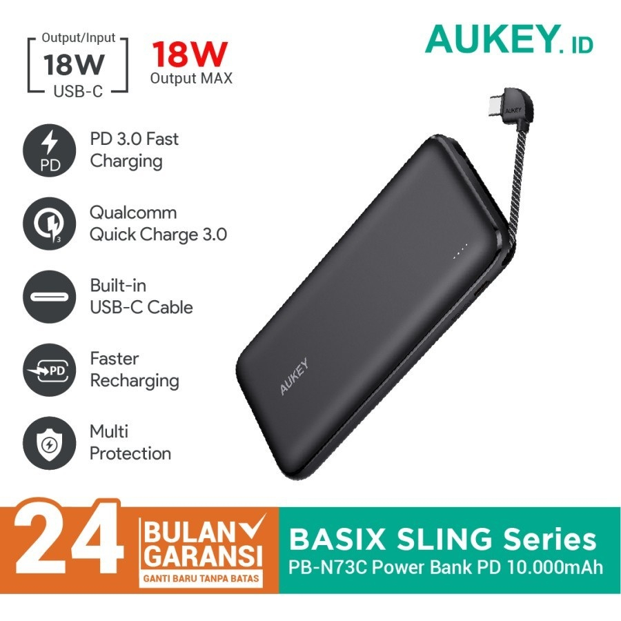 Isi dalam kemasan 1x AUKEY PB-N73C BASIX SLING 10000mAh 1x User Manual