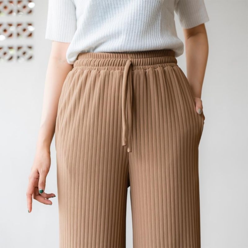Pakaian Wanita > Celana Panjang & Legging > Kulot > Aulia - kulot Hornet Knit//Celana Kulot Hornet Highwaist//Panjang 95