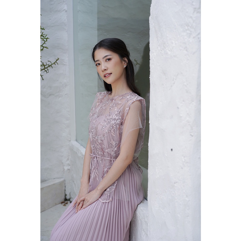 Satu set dress dilengkapi dengan inner pleated dress A Line warna dusty pink lilac yang super anggun, flowy dan dapat dipakai terpisah. Warna pink yang soft, klasik cocok dipakai untuk acara special seperti ke party, mengikuti wisuda atau untuk hadir ke wedding party.
