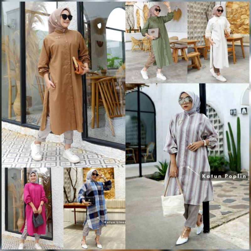 Fashion Muslim > Atasan Muslim Wanita > Tunik > Aura Set Tunik / Setcel Tunik / Sakura Set / Oneset Tunik Polos / Set Celana Tunik fit to XL / set celana katun