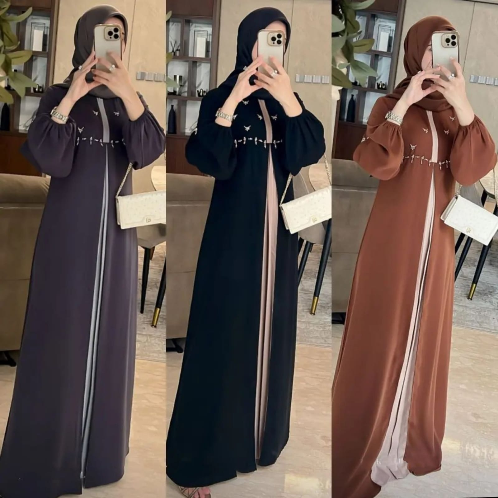✔️DETAIL PRODUK - Zipper depan (Busui Friendly) - Pergelangan tangan karet - Aksen payet mutiara