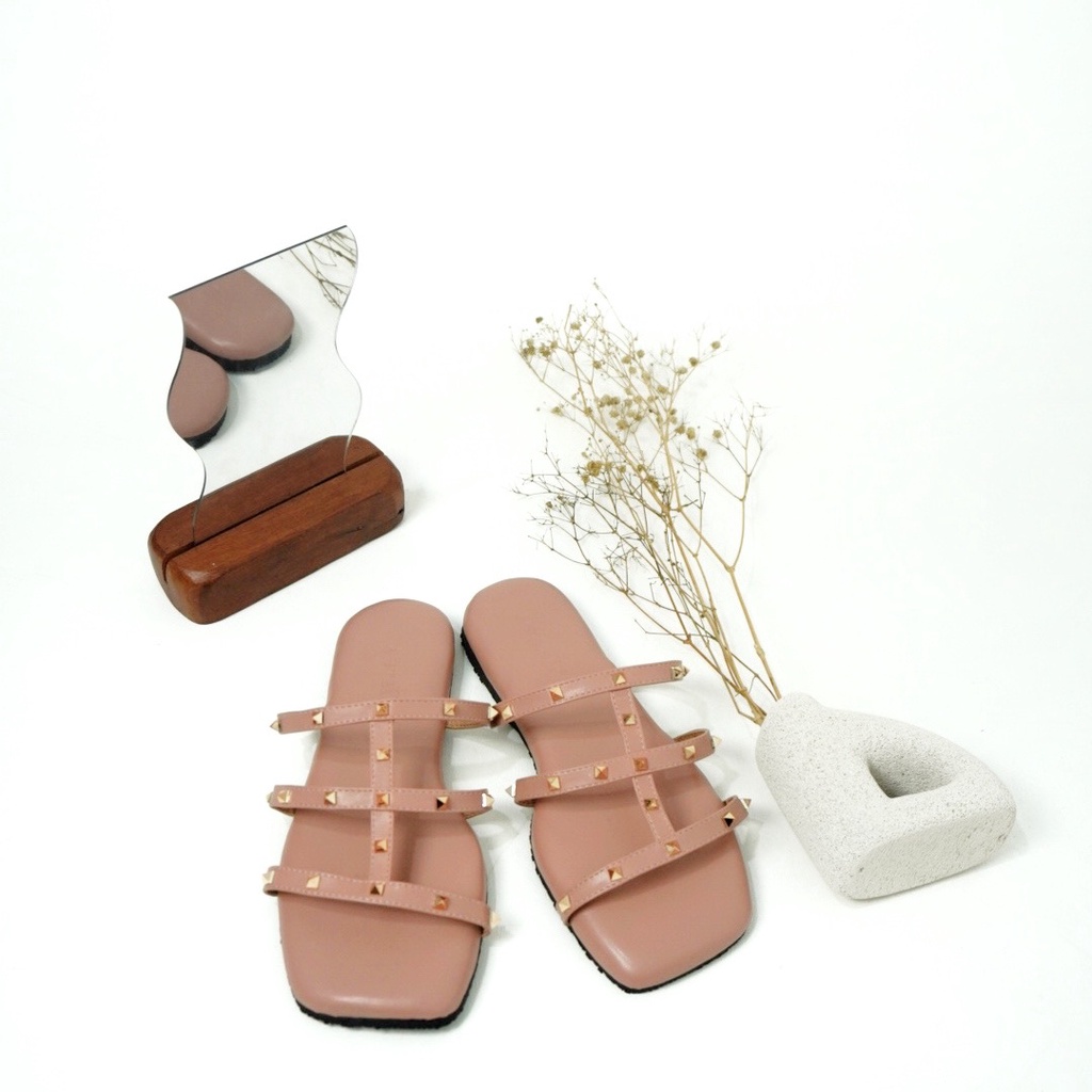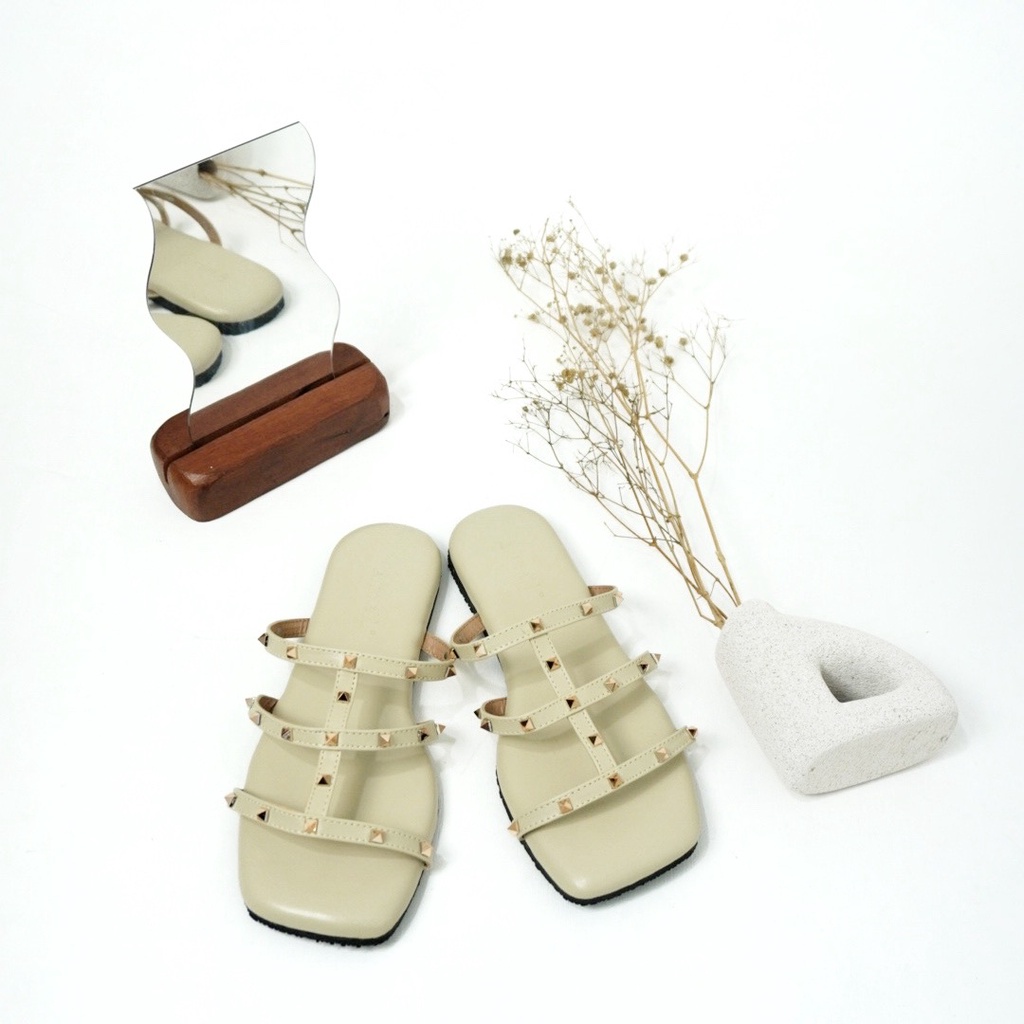 This is Berly Sandals! Sandals teplek big size yang dilengkapi dengan piramid gold yang bikin tampilannya makin cantik. Cocok banget dipake dirumah sehari-hari atau hangout ke mall atau hangout di cafe sama temen-temen kamu Aurelly. Tersedia dalam 5 warna hitam, cream, camel, peach, dan putih😍😍