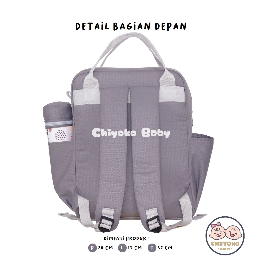 Keunggulan : • Pada bagian depan tas terdapat saku dengan aplikasi kain motif di penutup. • Pada bagian dalam tas memiliki ruang yang cukup luas untuk diisi dengan barang kebutuhan /perlengkapan bayi dengan sekat organizer. • Pada bagian samping kiri dan kanan tas terdapat saku serba guna, bisa untuk tempat tissue kecil, botol minum kecil, bisa juga untuk saku tempat makanan bayi seperti biscuit dll. • Desain menarik dan fashionable untuk dibawa berpergian.