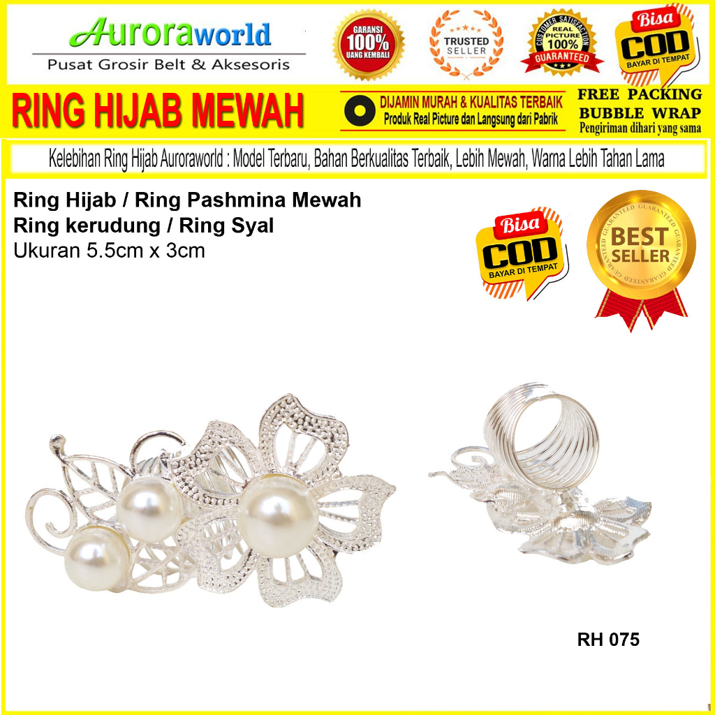 Detail Auroraworld Ring kerudung hijab bros ring syal permata Ring Pashmina Berlian mutiara Mewah bros cincin kerudung scarf fashion terbaru anti karat