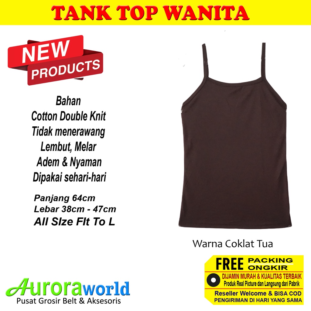 Pakaian Wanita > Atasan > Tanktop & Kamisol > Auroraworld Tank Top tali kecil Tanktop dalaman wanita bahan Cotton Double Knit tidak menerawang, adem dan nyaman dipakai bisa COD