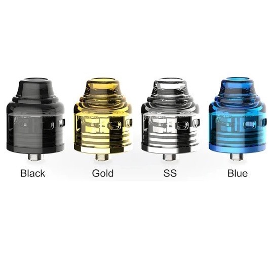 Specification: 25mm diameter Dual post expansive building deck 5mm deep juice well 810 drip tip Superior stainless steel construction Top secured via flathead screws PEEK insulator Dual coil configuration Double O-Ring top cap connection Dual Slotted airflow system Side airflow vent to side of coil Slotted top cap airflow control Squonkable BF 510 connection