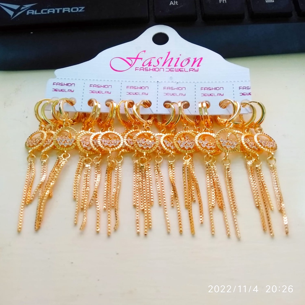 Harga tertera untuk 1 pasang anting All size remaja sampai dewasa Premium Mirror Quality Jewelry Bahan dasar tembaga lapis emas Menggunakan permata kristal zirconia Material anti karat non alergi cocok untuk kulit sensitif