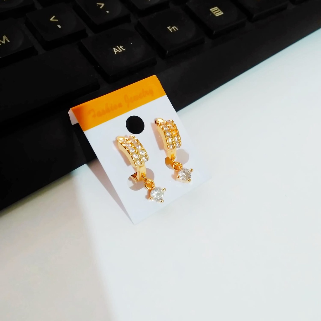 Harga tertera untuk 1 pasang anting Harga grosir All size Premium Mirror Quality Jewelry Bahan dasar tembaga lapis emas Menggunakan permata kristal zirconia Material anti karat non alergi tidak menimbulkan iritasi
