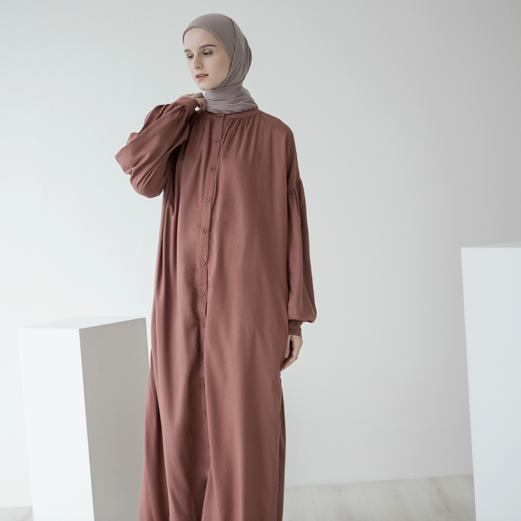 Avana by Aska Label - Gamis wanita dress wanita lengan panjang bahan rayon premium full kancing depan warna dusty blue, dusty lilac, brick teracota, hitam black