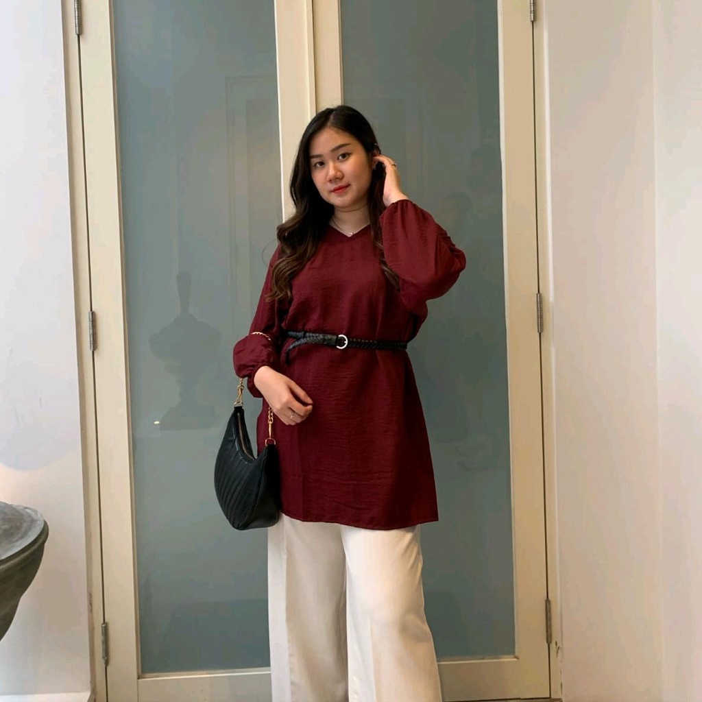 Material Crinkle Airflow Ld 120cm Panjang baju 80cm P.lengan 52cm L.lengan 44cm Detail model : -Model Vneck lengan panjang -Ada saku dibagian kiri -Bagian samping ada belahan kir & kanan -Dipergelangan ada karet