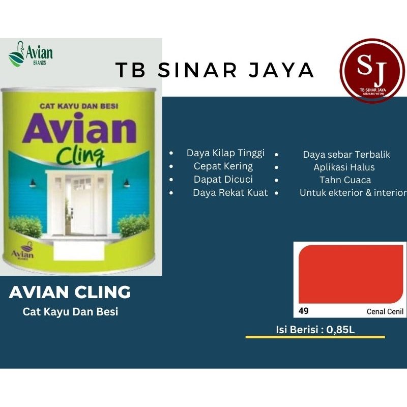 Avian Cling Synthetic Deskripsi Produk Avian Cling Synthetic adalah cat sintetis enamel berbahan dasar resin alkyd berkualitas tinggi dengan harga ekonomis. Memiliki kelebihan daya kilap tinggi, cepat kering, daya tutup baik, dapat di cuci serta mempunyai kelenturan dan kehalusan sangat baik. Dapat digunakan untuk eksterior dan interior, tahan lama, tahan terhadap cuaca dan tahan terhadap gangguan jamur.