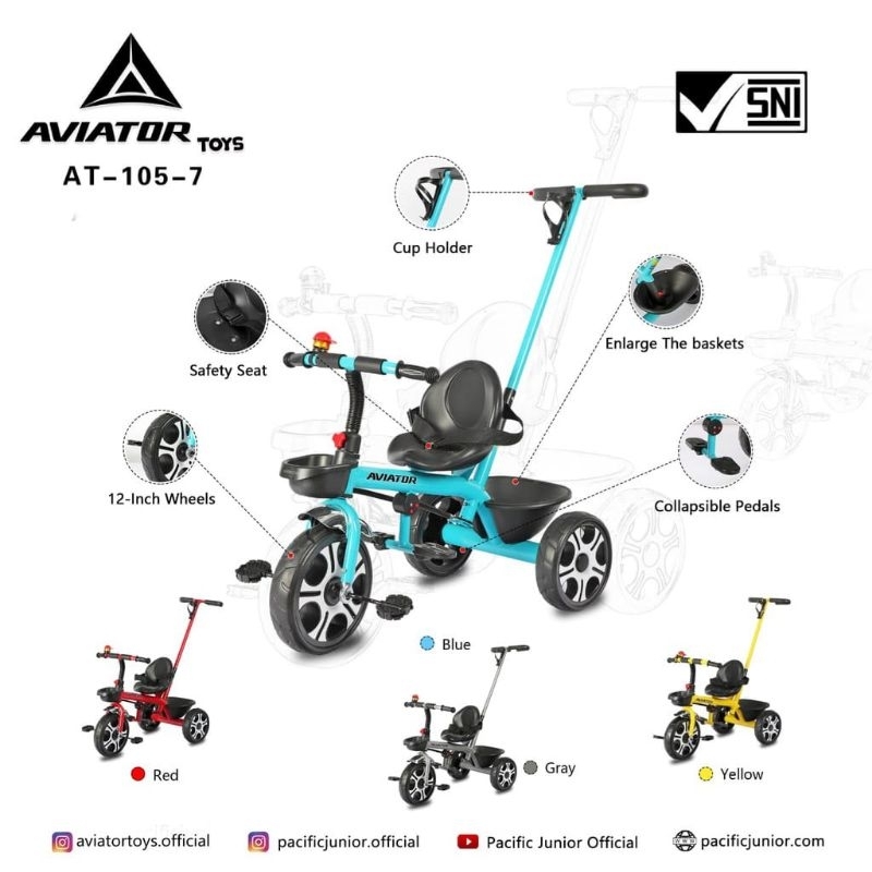 Aviator AT105-7 BMX IC Music EVA Tire Steering Rod Sponge Guardrail Extra Headrest Baby Tricycle