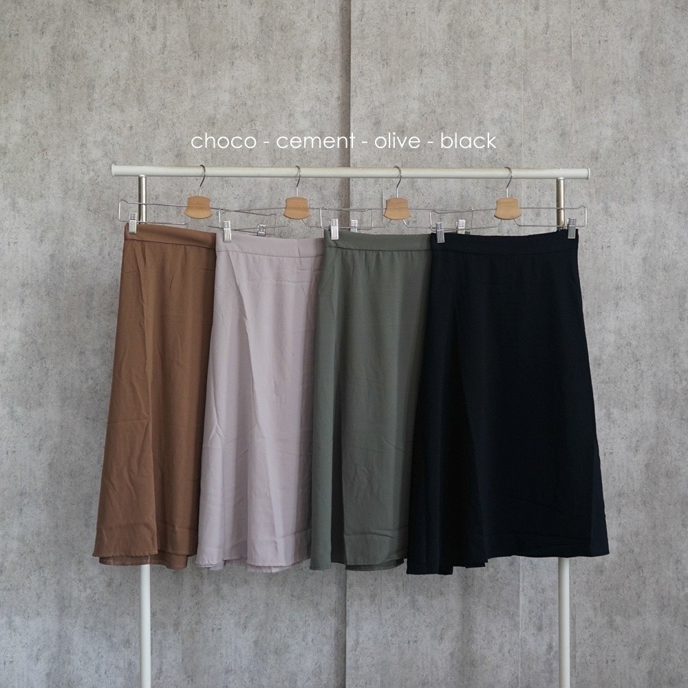 Avond Plain Skirt IDR 94,000 Available in Choco, Cement, Olive and Black Material : Crepe LP : 68-86cm Length : 76cm *warna sesuai foto gantung *ada karet di bagian belakang *grosir minimal seri warna disc 10,000/pcs.