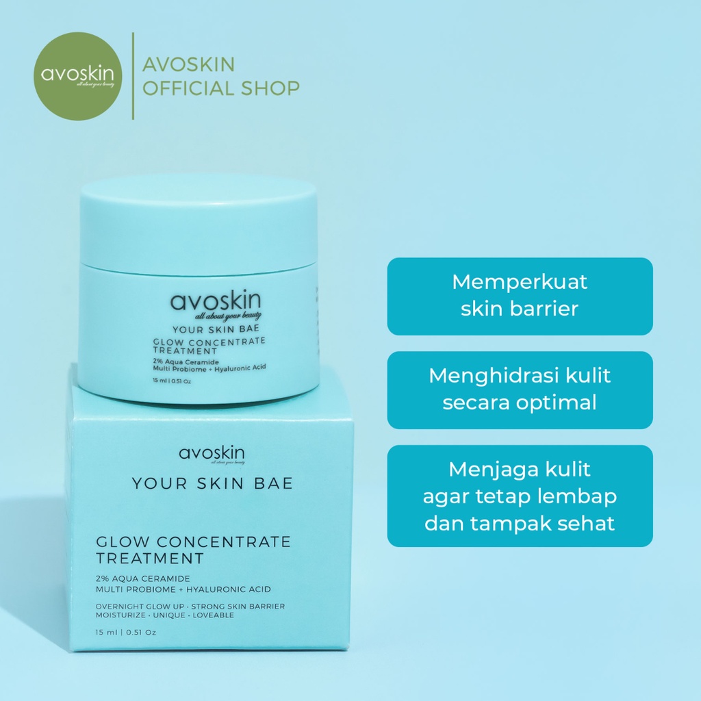 Detail AVOSKIN Your Skin Bae Glow Concentrate Treatment Moisturizer 45 & 15 ml (2% Alpha Arbutin + Multi Probiome + Beta Carotene, 1% Tranexamic Acid + Pineapple, 2% Aqua Ceramide + Hyaluronic Acid, Polypeptide + Acetyl Glucosamine + Red Algae) Pelembab